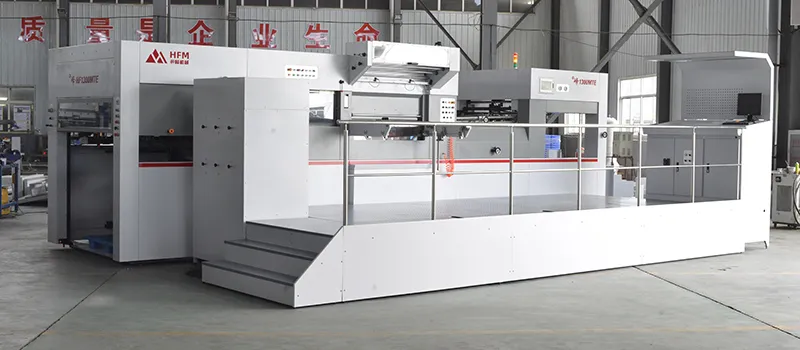 Essa máquina de corte e vinco combina corte e vinco para serviços pesados com uma unidade de descarte. Ela foi projetada especialmente para processar materiais de embalagem industriais pesados, podendo cortar com precisão materiais espessos e duros e, em seguida, remover os resíduos com eficiência. Assim, alcança-se um processo automatizado que integra alimentação precisa, corte e vinco eficientes e entrega organizada.